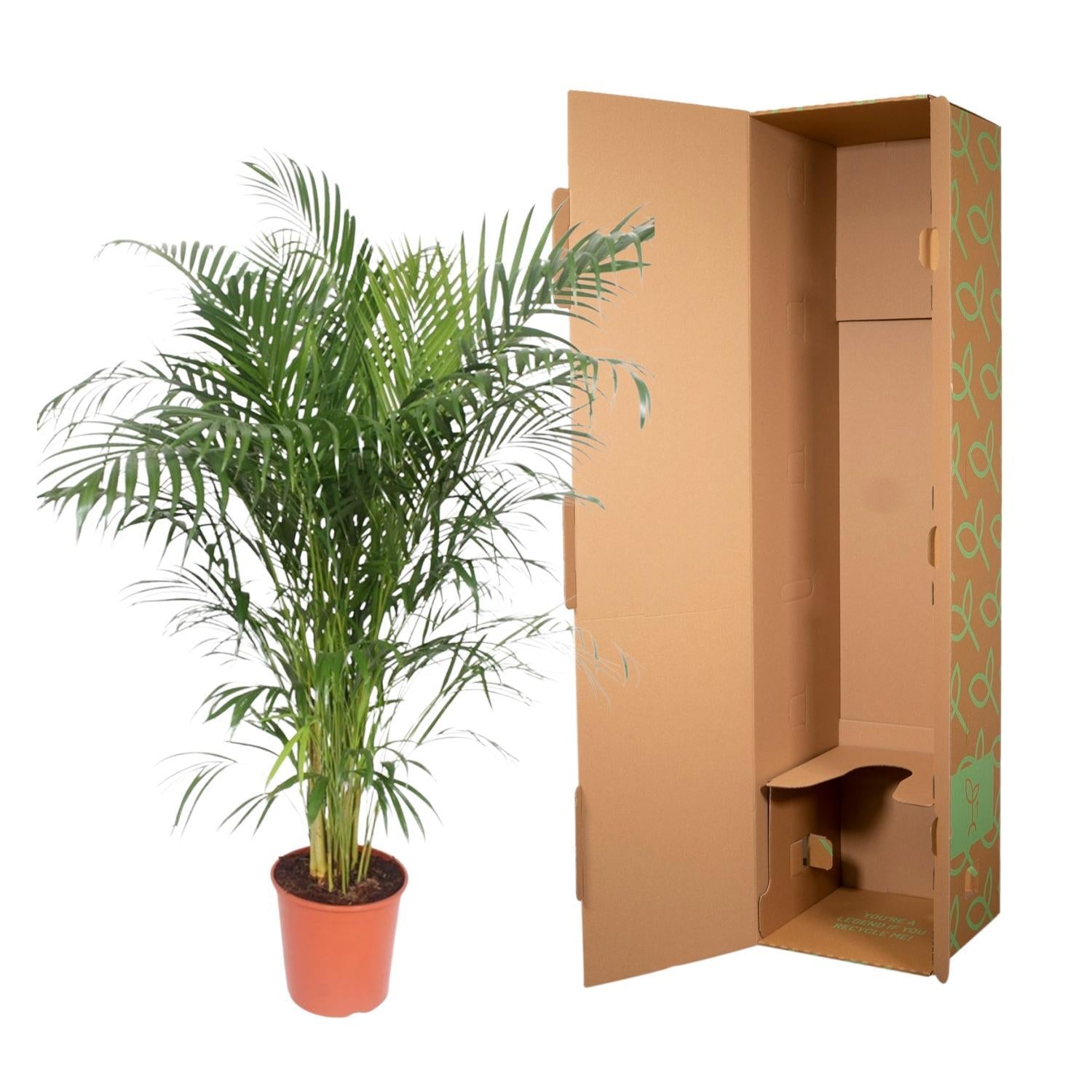 De Areca Palm wordt verzonden in een daarvoor speciaal ontworpen doos. Zo zorgen we ervoor dat de plant netjes en zo snel mogelijk naar je toegestuurd wordt. Is de plant toch beschadigd geraakt? Dan krijg je van ons gratis een nieuwe kamerplant toegestuurd!