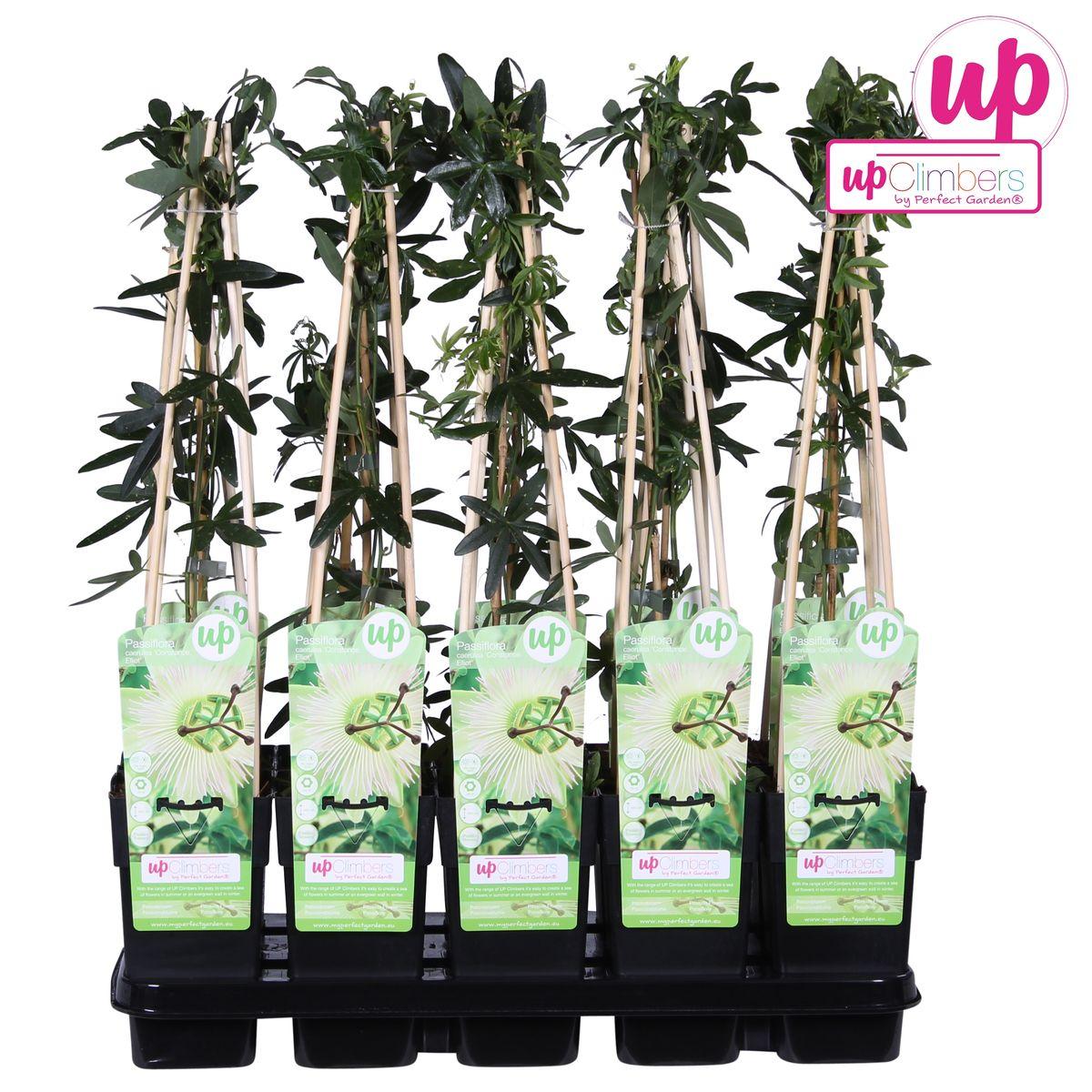 ‘Passiflora caerulea Constance Elliot’ is een klimplant met schitterende ivoorwitte passiebloemen. De plant komt oorspronkelijk uit centraal en west Zuid-Amerika, maar nu kan je ook tropische sferen in eigen tuin creëren. Van juni tot september kun je bloemen verwachten in de passiflora. De Passiebloem is een echte mooi weer bloeier. Op warme dagen met veel licht/zon zullen de knoppen open springen. Op wat koudere en donkere dagen zullen er juist weinig bloemen open springen. Het is een echte klimmer en heeft daarom graag wat ondersteuning bij het groeien van een klimrek of schutting.